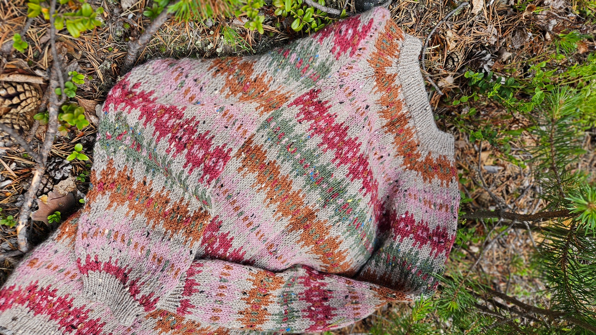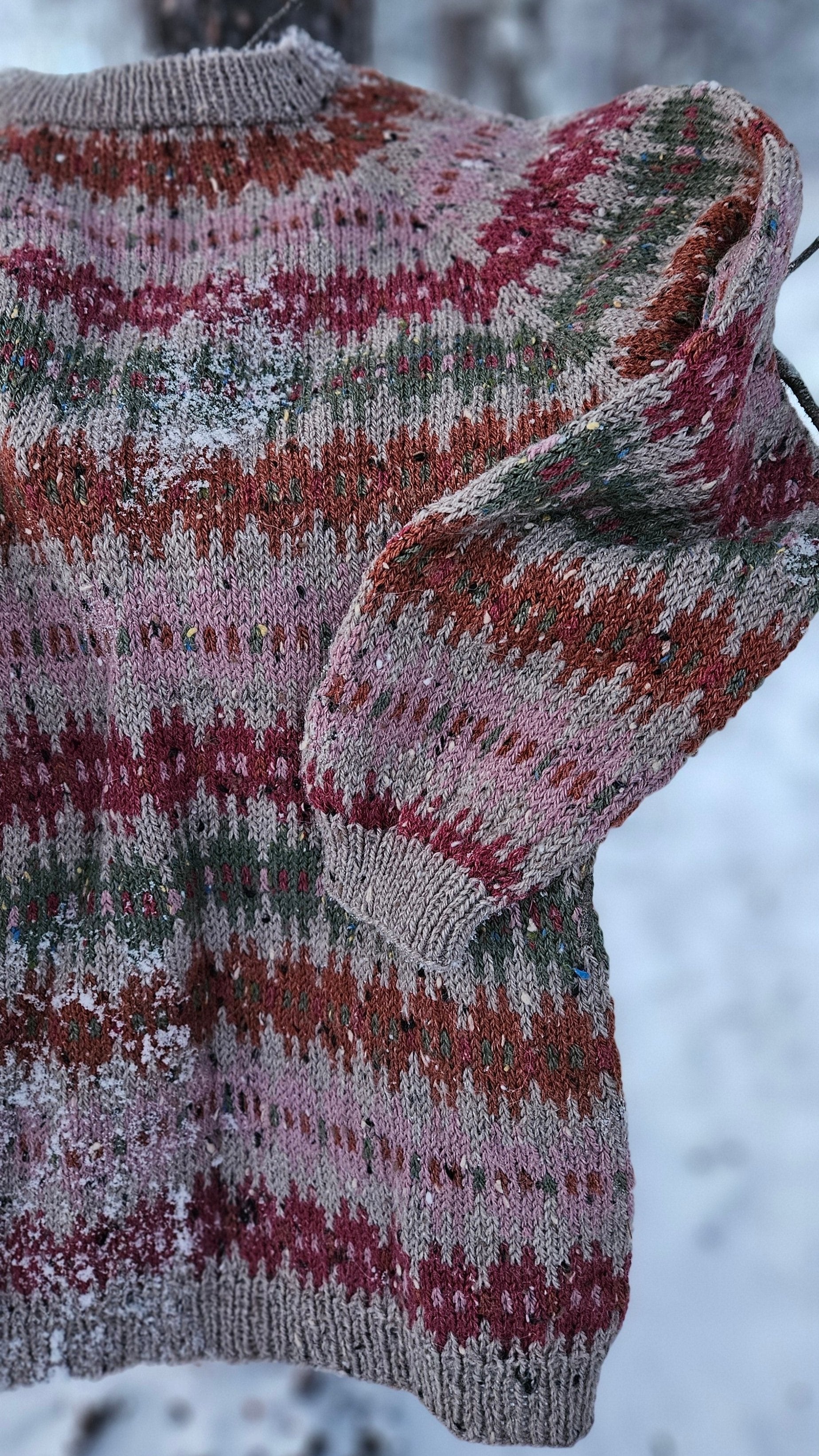 Bestagenseren strikket i Viking garn picasso tweed. Garnet er mykt og lett, perfekt for barnegensere.