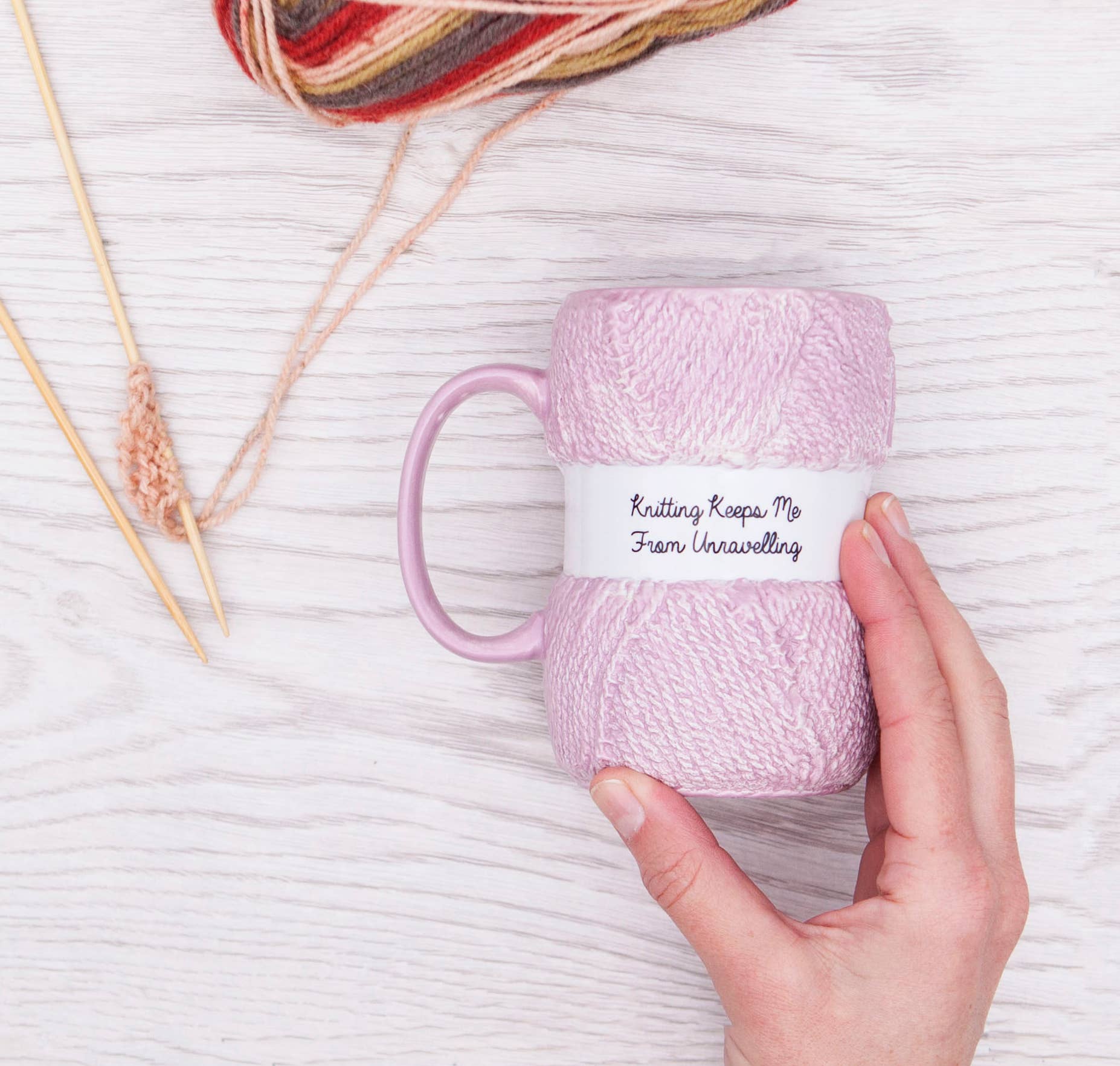 Formet som en rosa ullkule med teksten "Knitting keeps me from unravelling", er dette kruset en strikkeelskers drøm som går i oppfyllelse. En perfekt gave til strikkefanatikeren i livet ditt på bursdagen, til jul og til og med morsdagen?